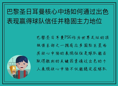 巴黎圣日耳曼核心中场如何通过出色表现赢得球队信任并稳固主力地位