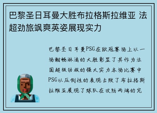 巴黎圣日耳曼大胜布拉格斯拉维亚 法超劲旅飒爽英姿展现实力