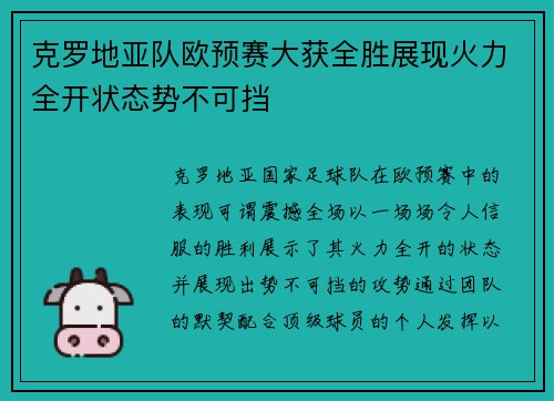 克罗地亚队欧预赛大获全胜展现火力全开状态势不可挡